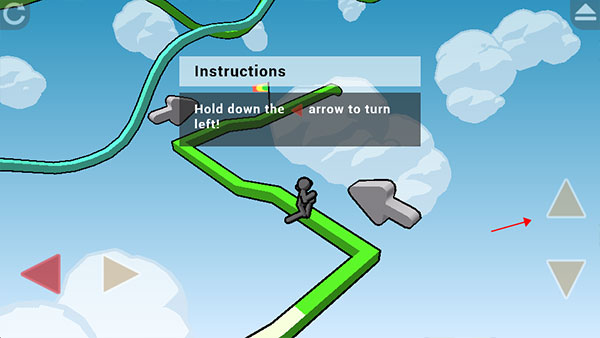 玩家要帮助角色安全的到达终点并过关,值得一提的是随着游戏的进行,火柴人会变得越来越快,而且画面中的地形也会越来越复杂,玩家一个不留神就坠落悬崖。