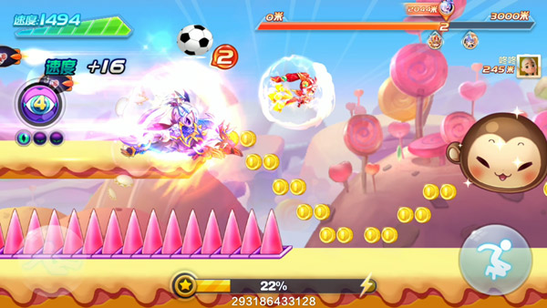 5、开局点出超级完美后,若遇到开局减速云,要么先不飞,待过了减速云再飞,要么直接3跳到减速云上方,卡滑翔放技能滑过减速云,建议选先不飞,暗黑大圣的技能可操作,发动技能按着不松,进入超级冲刺后立刻松手,这样节约能量,按1次技能就会扣能量,所以不要立马松手,若没吃满气力槽很容易浪费技能。
