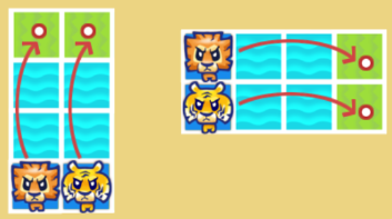 - 狮子和老虎可以用跳过小河的移动来吃掉敌方动物。