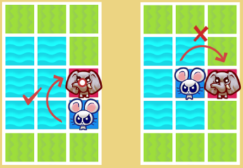 - 如果有老鼠(不管已方或敌方)位于小河里,它能阻挡狮子和老虎跳过小河。