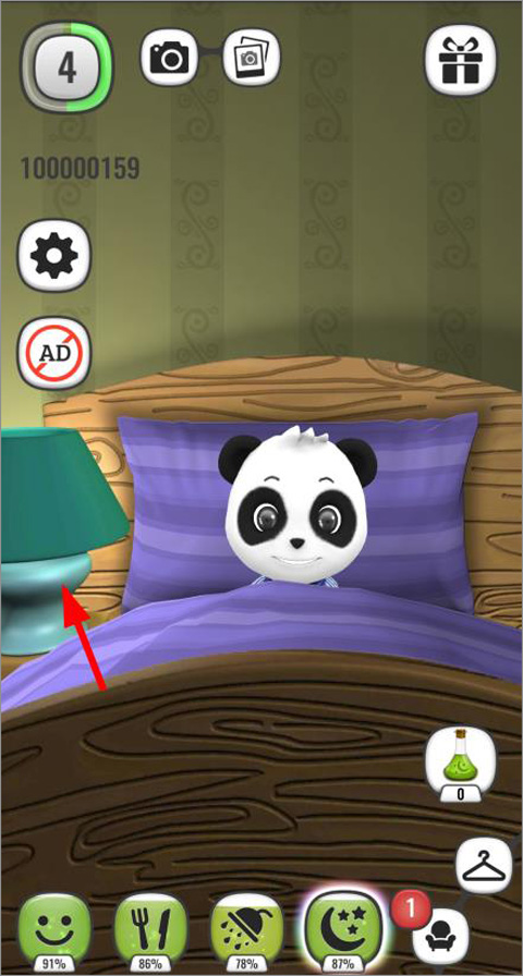 6、进入卧室后,玩家可点击左侧关灯让熊猫休息,休息好之后点击开灯即可;