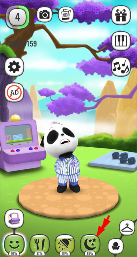 5、帮小熊猫清理干净之后,点击睡眠标志让它去卧室休息;