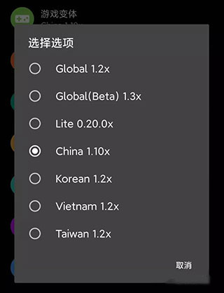 注意”游戏变体“很重要,如果你要玩《和平精英》就要选择”China 1.10x",国际版的话就选"Global 1.2x"。
