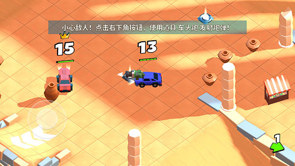 另外,游戏的操作简单,模拟键盘只有方向键和一个道具键,玩家只需要控制这两个按键,除了操控汽车躲避、撞击、自动化漂移外,玩家还能进行急停倒车动作。值得一提的是,现在还有着独特的联机模式,让你无论何时何地都可以和自己的好友一起展开实时对决,在8张不同的地图场景中探寻不一样的游戏体验,喜欢的玩家们快来下载吧。