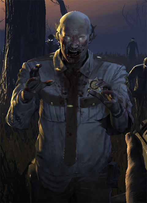 3、小胖:一个白色小背心的胖子,普通模式里最强的丧尸。好吧,满级ak一枪一个
