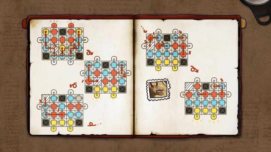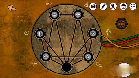 机关很简单,需要玩家把对应的图像挪到正确的位置,点击石块移动,石块只能沿着黑线移动到空地。
