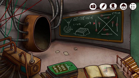 哦?左边的一定就是传说中的时间机器了,黑板上写了一定的公式,右边的是什么呢?看着这分布规律的红圈和特意标注的红色箭头,你明白了——真相只有一个!凶手就是你!(不好意思串台了……),于是你又使用了游戏的截图/笔记功能记下了黑板上的图像,尤其是,你没有忘记标注红色箭头的位置。