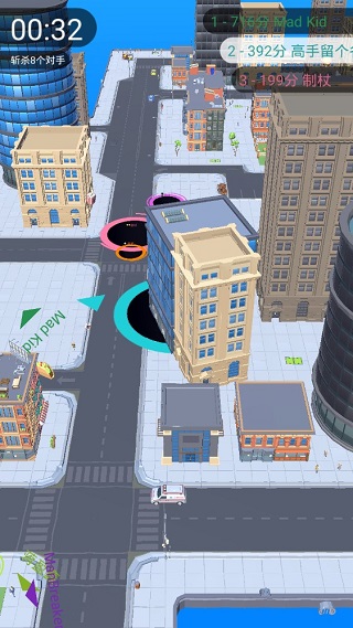 地图里要不断的移动,因为我们可以吃的东西不会突然出现,你要去寻找,沿着道路,发现可以吃的东西,快速过去,完成吞食的动作,增加我们的黑洞的体积。