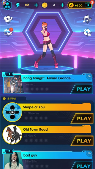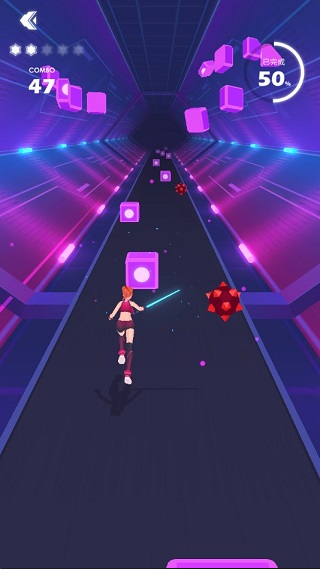 此外,该游戏操作非常简单,通过主界面挑选歌曲,随着节奏的律动长按屏幕左右可移动角色,利用角色手中的光剑,挥砍路线上出现的律动方块,节奏越快,方块数量越多,并且节奏光剑游戏为了增加挑战难度,沿途还有各种障碍和爆炸物,阻挡你的前进。按照往常音乐类游戏一样,在此期间造成的连击可以提供积分加成,积分是判定玩家星级获得的关键。成功挑战后可以获得游戏币奖励,消耗游戏币可以解锁新的角色与武器,同时还能解锁更多歌曲,那么有喜欢的朋友,赶紧下载体验吧!