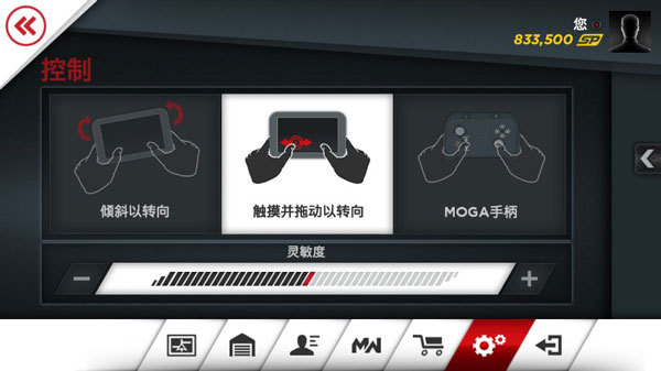 同时针对不同的玩家,游戏除了传统的点触式操作以外,还拥有重心、手柄两大模式,而且灵敏度还可以自由调节。