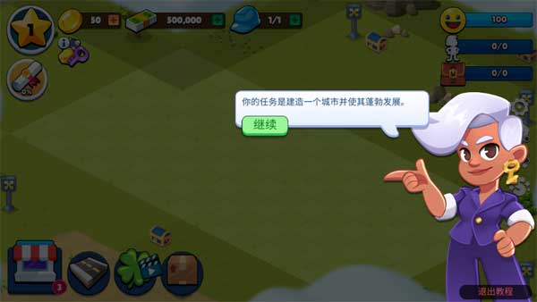 1、游戏开局会有一位女士介绍玩家将如何开展城市建设,而你首要的目的就是建造一个城市并使其蓬勃发展。