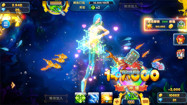 2、不难发现在捕鱼过程中,大鱼的出现身边一定会有许多小鱼的存在。而这些小鱼的作用是抵挡渔网,以免大鱼被成功捕捉。对此,玩家在使用炮台射击时,可以把目标放在鱼多的位置。即便是不能成功捕捉大鱼,小鱼也能弥补一定的金币损失,尽量做到一炮打多鱼。