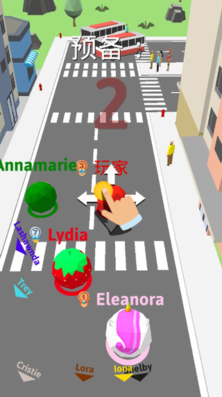 该游戏的玩法十分简单,用手指滑动屏幕来移动小球的位置,前期需要从小物品开始,比如红绿灯、路灯、行人等比较小的,等自己变大一些,之后就可以去粘树木汽车等东西,紧接着当你可以粘房子和车子的时候,就可以随意浪了,因为你基本上什么东西都可以粘在身上,但是也要注意躲避比你体型大的玩家,可以在屏幕的两侧观察他们的位置。