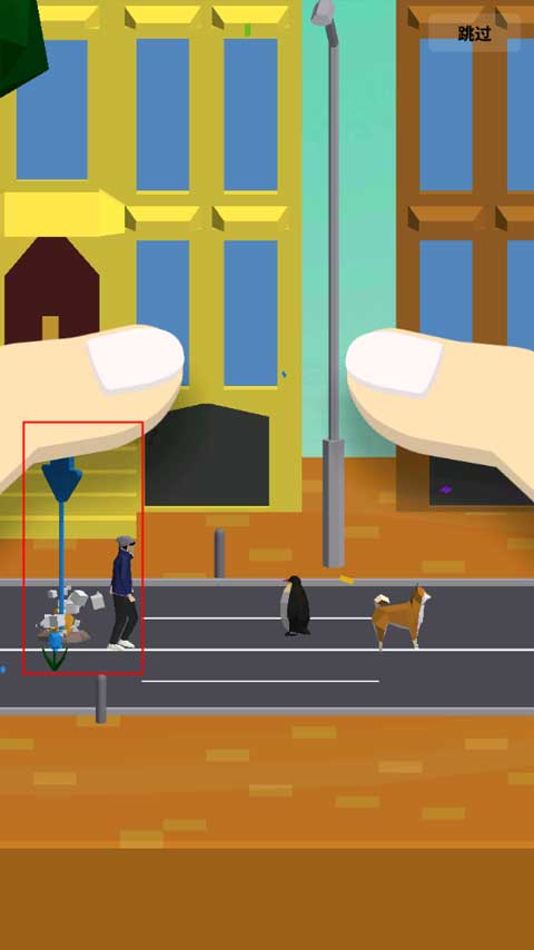 1、游戏的开始会会有一个人待着小企鹅进行游行,通过滑动屏幕的方式来切换不同类型的角色。