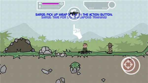 2、点击左边的瞄准按钮,玩家可以控制角色的枪支射击方向,长按即可射击;