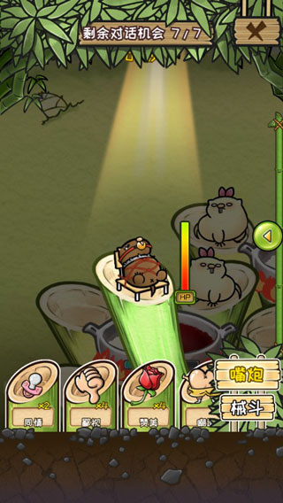 第六代以上的竹鼠都很皮,不愿意进化,这时各种奇葩道具(青瓜、平底锅、丝袜)派上用场了!玩家策略使用道具和竹鼠来一次灵魂对话!没有什么是一场灵魂对话解决不了的,如果不行,那就两场。