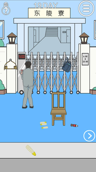 第十九关:拿走地上的玉米,右转把玉米给鹦鹉(真的是鹦鹉嘛?)把鹦鹉放在左边的笼子里,从书包上拿出可乐给宿管,等他进去后直接进去;