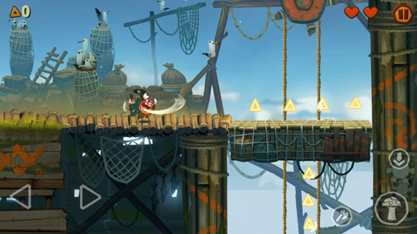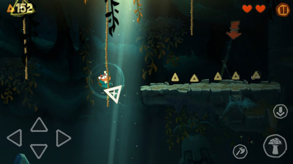总体来说奥德玛的操作并不复杂,和其他的很多横版通关游戏是类似的,游戏支持摇杆和触屏两大模式,其中两种模式下左右是控制奥德玛主角进行移动的,而右侧的话摇杆中通过上滑让主角进行跳跃,下滑进行快速下降,而触屏中就有明显的区分,只需要点击即可。