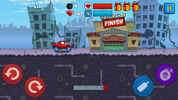 1、进入关卡后,点击右下角的蓝色涡轮增压按钮来让汽车加速行驶。