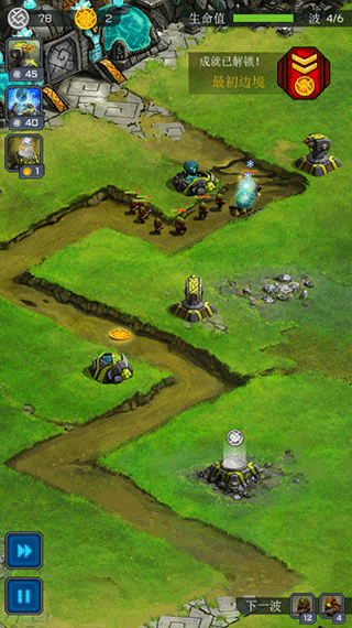 2、放置好后,点击左下角的“三角”图标,敌人开始入侵,即开始游戏。