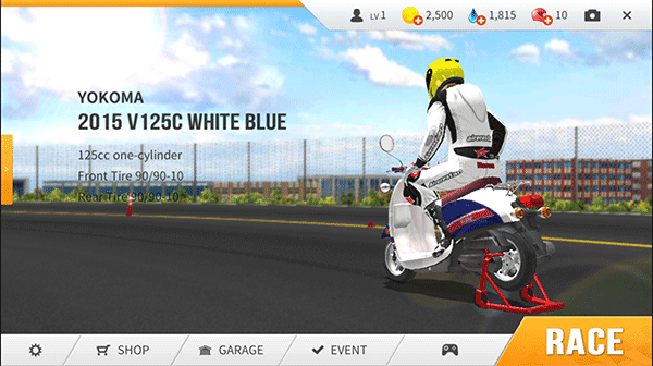 - 升级摩托车即可提高速度、加速度、转弯、刹车性能。
