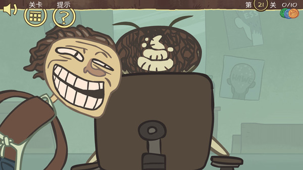 第八关:先点击主角的头,头掉下来后再次点击头,即可过关;