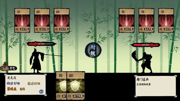 基础牌:主要分为攻防两种牌,左上方显示攻击或者防御数值,根据敌人的基础牌见招拆招。