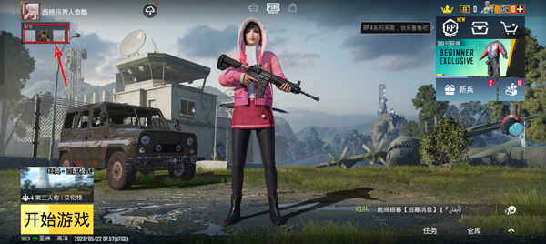 1、当我们进入到绝地求生刺激战场亚服手游大厅之后,在左上角我们的头像下面有一个框框,点开那个框框;