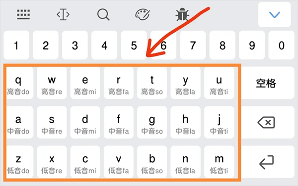例如:哆来咪三个音,输入的代码应该为 q w e ,音乐盒会自动识别并进行染色,正常情况下是蓝色的代码 q w e ,若输入错误 qwe 会显示为黑色(无法识别的代码)