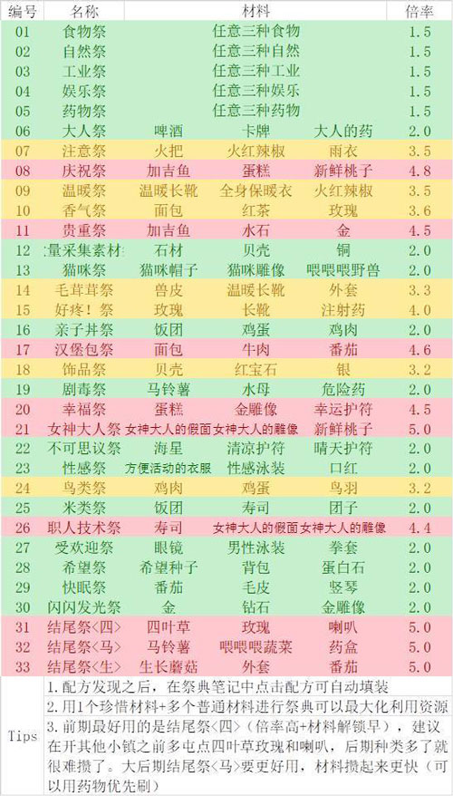 祭典目录如下,大致用三种颜色区分了倍率高低。个人建议在图片最后