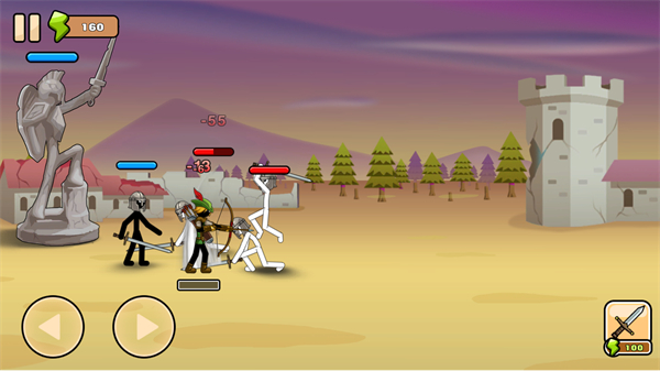 火柴人战争之我是弓箭手最新版是一款以火柴人为模型打造的塔防闯关类游戏,英文名叫I am archer,中文简称我是弓箭手,在游戏中玩家将扮演一名火柴弓箭手,通过对迎战兵种的分配来彻底摧毁敌人防线,并成功拿下敌人的防御基地。游戏内具有丰富的章节活动,以及不同难度级别的挑战性关卡,多样化的兵种解锁能够让你制定出多类型的战术分配,通过组建不同兵种进行布阵,争取用最小的伤亡量换取最大的胜利。