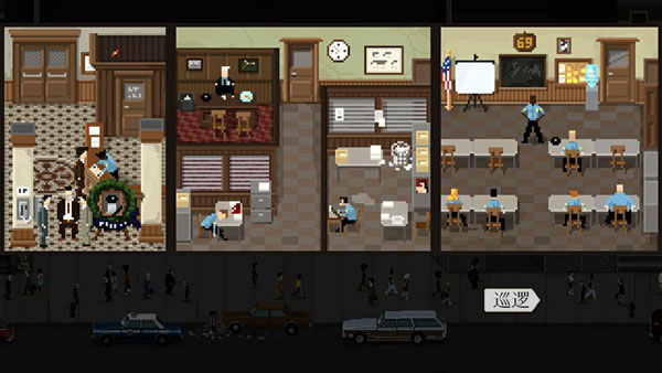 4、每天一开始的例会之后别急着点Beat It开始巡逻,不妨听听大家都说啥,每个人都点点,不光有各种梗,还会有有用的信息 比如第四天所说的4:00pm在pawnshop的集会,第五天所说的今天街上会有IA(内务部)的便衣检查警纪,别随便收受贿赂等等。