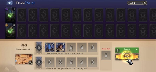 当然,你不可能每次都将你拥有的每一个英雄都投入战斗。这就是小队组建功能发挥作用的地方。现在,一支领主小队中总共可以拥有五名英雄和一名辅助单位。然而,并非所有的展示位置从一开始就可用。