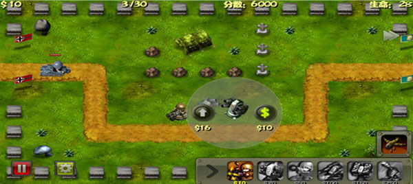 3、在这款游戏里,你扮演一名与主力部队失去联系的小小指挥,临时接管你的部队和防御设施;