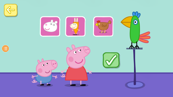 ●捉迷藏:在佩奇的房子和花园里玩躲猫猫,试着帮忙寻找鹦鹉Polly