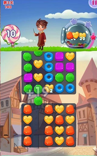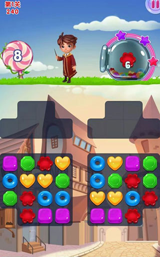 1、三个颜色相同的糖果连在一起就可以收集,这就是魔法的力量,每个关卡都有收集的目标,完成目标就可通关下一个关卡