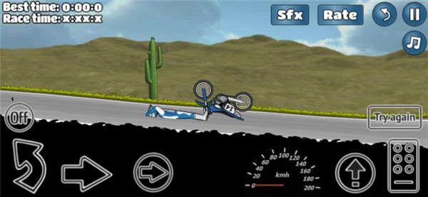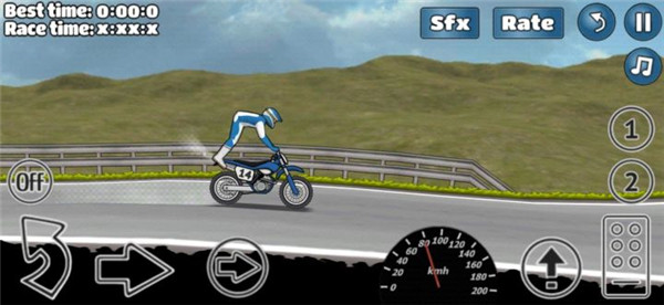 游戏玩法简单有趣,玩家将驾驶着一辆摩托车开始闯关挑战,游戏中提供了众多难度不同的关卡可以解锁挑战,期间你需要控制你的摩托利用动作特技,跨越各种不同类型的障碍物,特技越复杂获取的分数也就越高,当分数达到一定阈值后我们将会获得3星荣耀并完成通关。