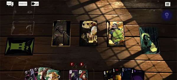 1、桌面:每张牌的左上角都有属于自己的小标志,长按卡牌预览效果时可以帮助你快速了解对应信息。(追兵-战斗补位:指有召唤能力的敌人会从这里召唤追兵。金边:跟剧情有关的,只是刚好截图的是npc。)