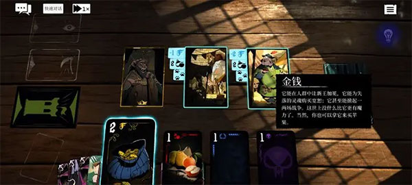 接下来介绍游戏的战斗界面!在预言奇谈中除了用物理方式解决敌人还能靠各种方式解决掉危机!正所谓有钱能使鬼推磨…!