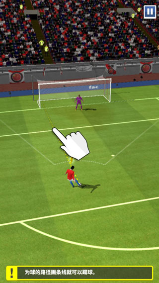 5、我们先熟悉下操作,为球的路径画线就可以踢球;