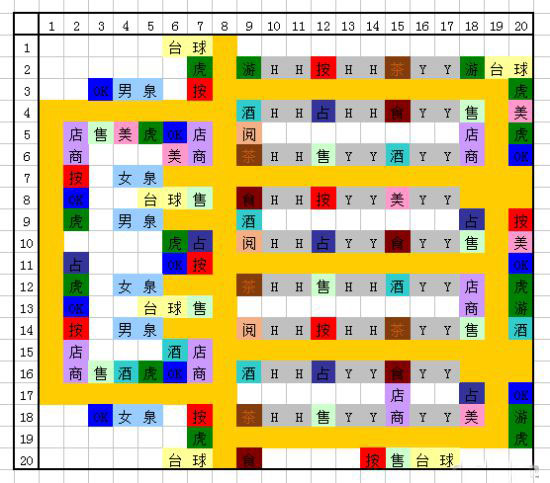 一周目的小温泉布局~空白的格子随便放,客房不够放客房,再随便放些商店也是可以的。前台多多再也不怕排队啦~