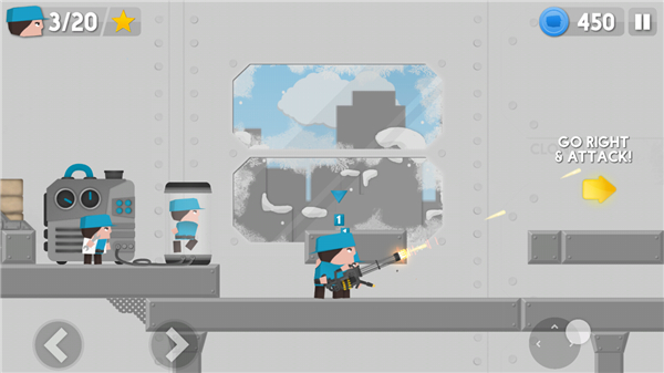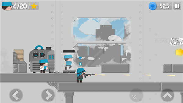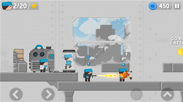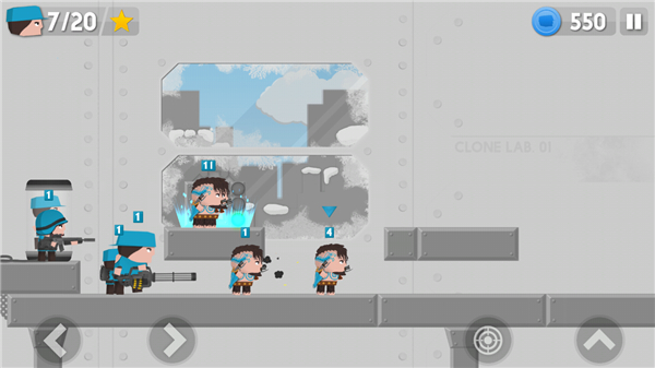克隆军团国际版是一款非常有意思的塔防射击战斗游戏,采用了可爱的卡通风格去塑造人物形象,拥有简约清晰的游戏画风,非常q萌,玩法也很休闲有趣,还拥有着大量的地图关卡等待玩家来探索挑战。游戏玩法非常特别,玩家将拥有属于蓝色军团的阵营,你可以选择克隆不同的兵种,比如手枪兵、大刀兵、炸药兵等等,每一种兵都各有特色,你可以操作它们去进行战斗,操作方式也是非常简单,左右移动以及跳跃,还有射击,非常的有趣。