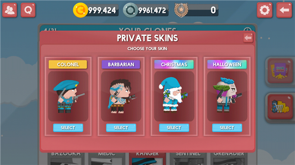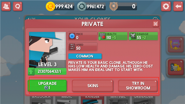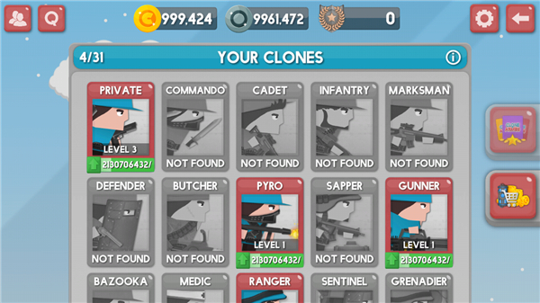 5、选择你自己的单位和不同的克隆,从迷你枪挥舞士兵喷气包或罐设计你的军队。