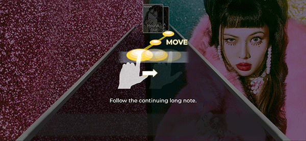 5、黄色连续音符则在标准线位置按住音符并跟着连续转折