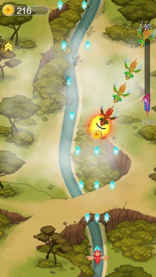 3、游戏中的战机都是龙的造型,让人感觉到十分的新颖,并且这些战机还都能够进化,拥有更多形态的外形,你将体验到不同战机的驾驶乐趣;