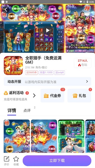 进入游戏下载页面,有游戏介绍详情,其中包括礼包的详细描述,充值福利的说明等。