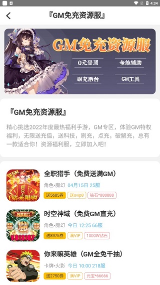 如GM免充资源服,单击进入即可选择里面的游戏,不同礼包、游戏服入口皆为对应游戏。