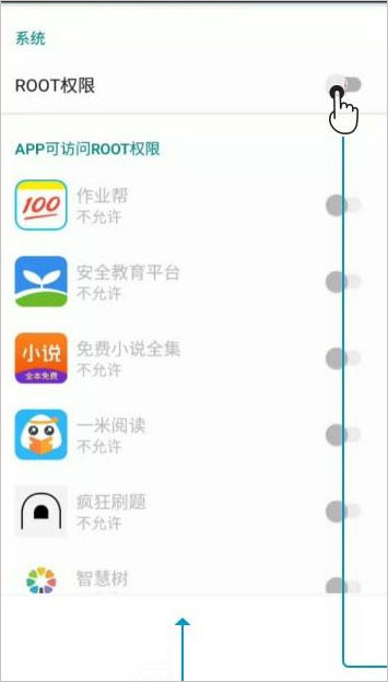 2、第一次开启ROOT权限开关,需要大家点击同意免责声明,不然的话是无法使用root权限管理功能。