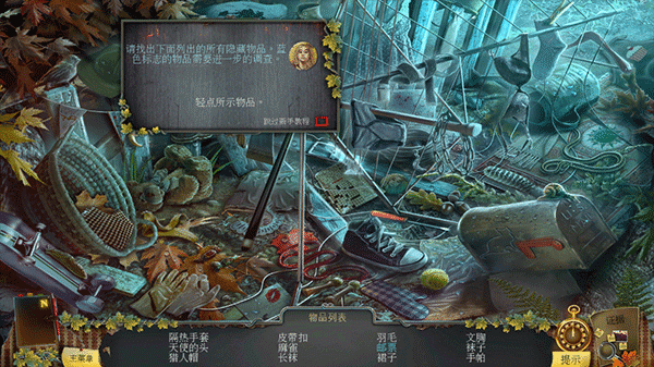 2、往前走,点击栅栏,进入寻物游戏。结束以后得到黄色天使头。