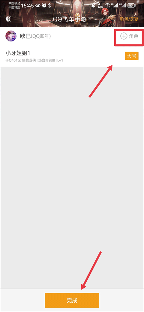 2、进入后点击右上角的+角色,点击后就会显示出你的账号。温馨提示:玩家只有拥有游戏账号才可以进行绑定哦